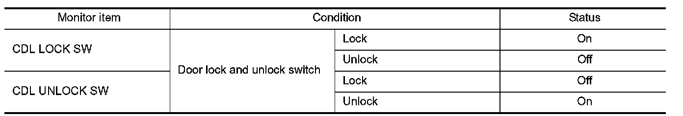 2.Select "CDL LOCK SW", "CDL UNLOCK SW" in "DATA MONITOR" mode.