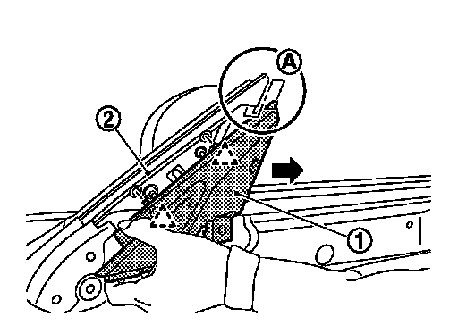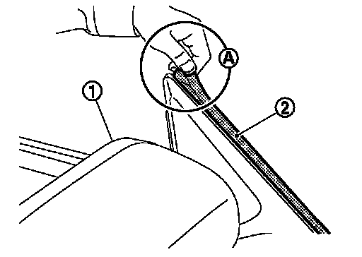 - Remove door weather-strip (2) from door mirror corner cover (A) portion.