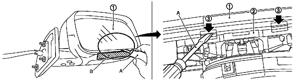 3.As shown in the figure, insert a small flat-bladed screwdriver (A) between glass mirror (1) and actuator (2).