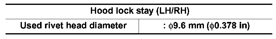 - Remove the rivets, and then remove the hood lock stay (LH/RH) from the radiator core support assembly.