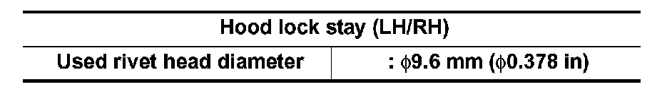 - Remove the rivets, and then remove the hood lock stay (LH/RH) from the radiator core support assembly.