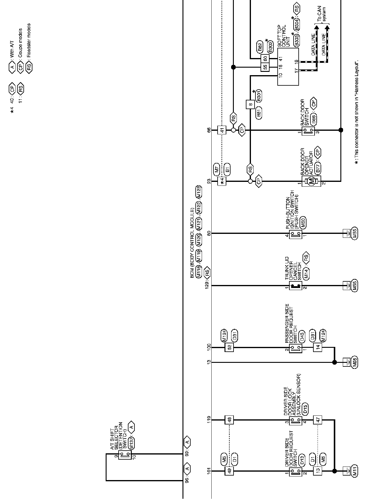 For connector terminal arrangements, harness layouts, and alphabets in a (option abbreviation; if not described in wiring diagram),