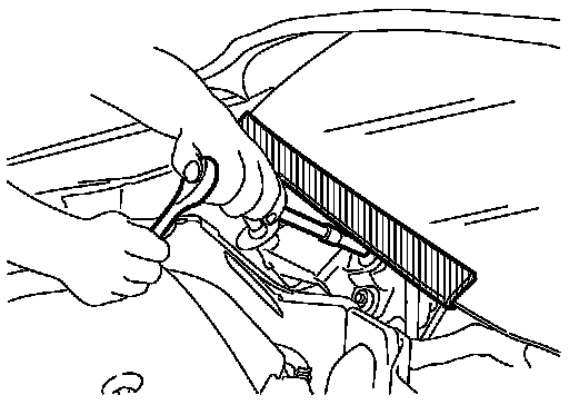 When performing the procedure after removing cowl top cover, cover the lower end of windshield with urethane, etc to prevent damage to windshield.
