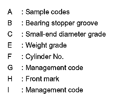 1.Apply connecting rod big end diameter grade stamped (D) on connecting rod side face to the row in the "CONNECTING ROD