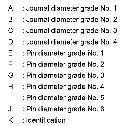 4.Apply the symbol obtained to the "CONNECTING ROD BEARING GRADE TABLE" to select connecting rod bearing.