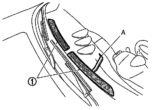 1.Remove front defroster grilles (1), using a remover tool (A).