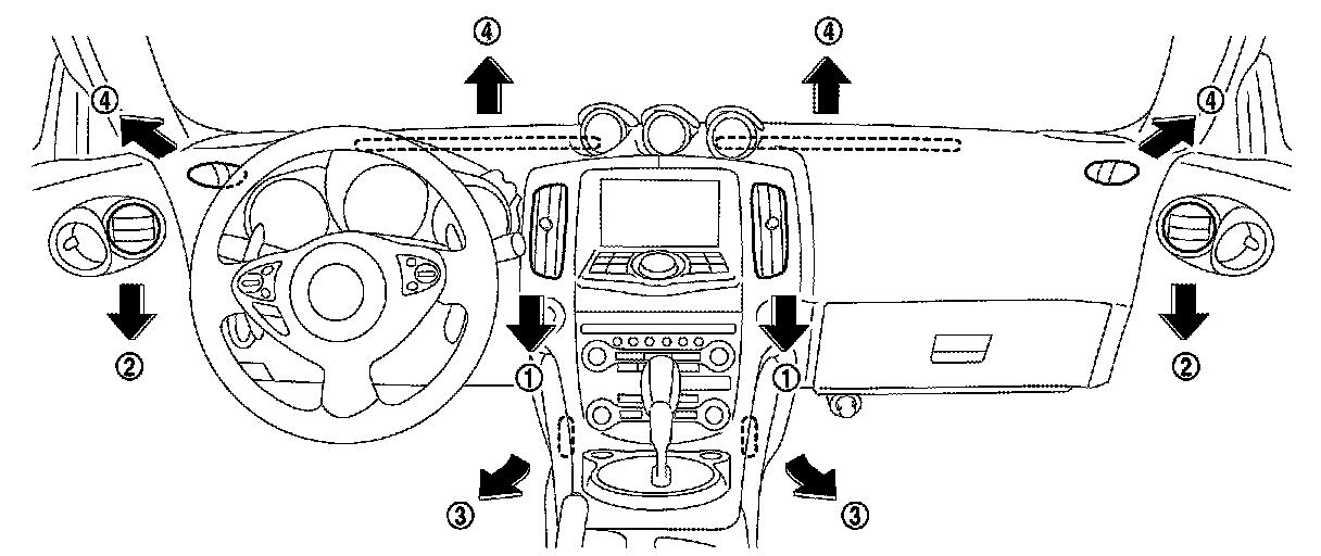 Ventilation system is controlled by A/C auto amp. For details of automatic air conditioner system, Without 7 Inch Display (WITHOUT 7 INCH DISPLAY) or With 7 Inch Display (WITH 7 INCH