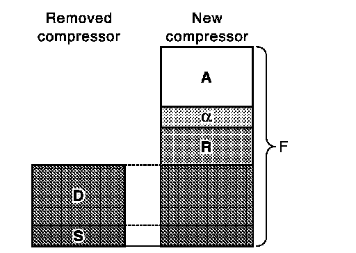 5.Drain lubricant from a new compressor for the amount that is calculated according to the following conditions.
