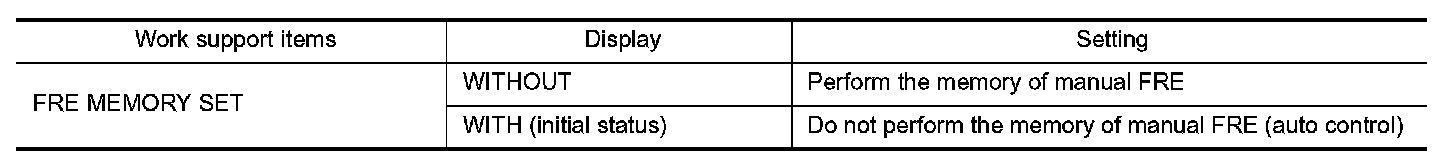 - If the ignition switch is turned to the OFF position while the FRE indicator is set to ON (fresh air intake), "Perform the memory" or "Do not perform the memory" of FRE indicator ON (fresh air intake) condition can be selected.