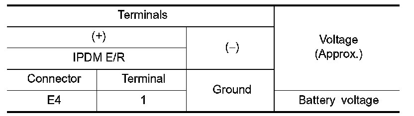 3.Check voltage between IPDM E/R harness connector and the ground.