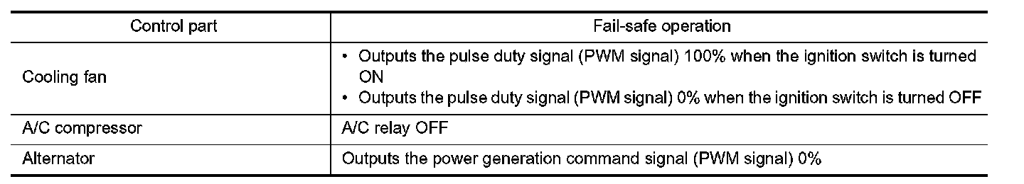 When CAN communication with ECM and BCM is impossible, IPDM E/R performs fail-safe control. After CAN