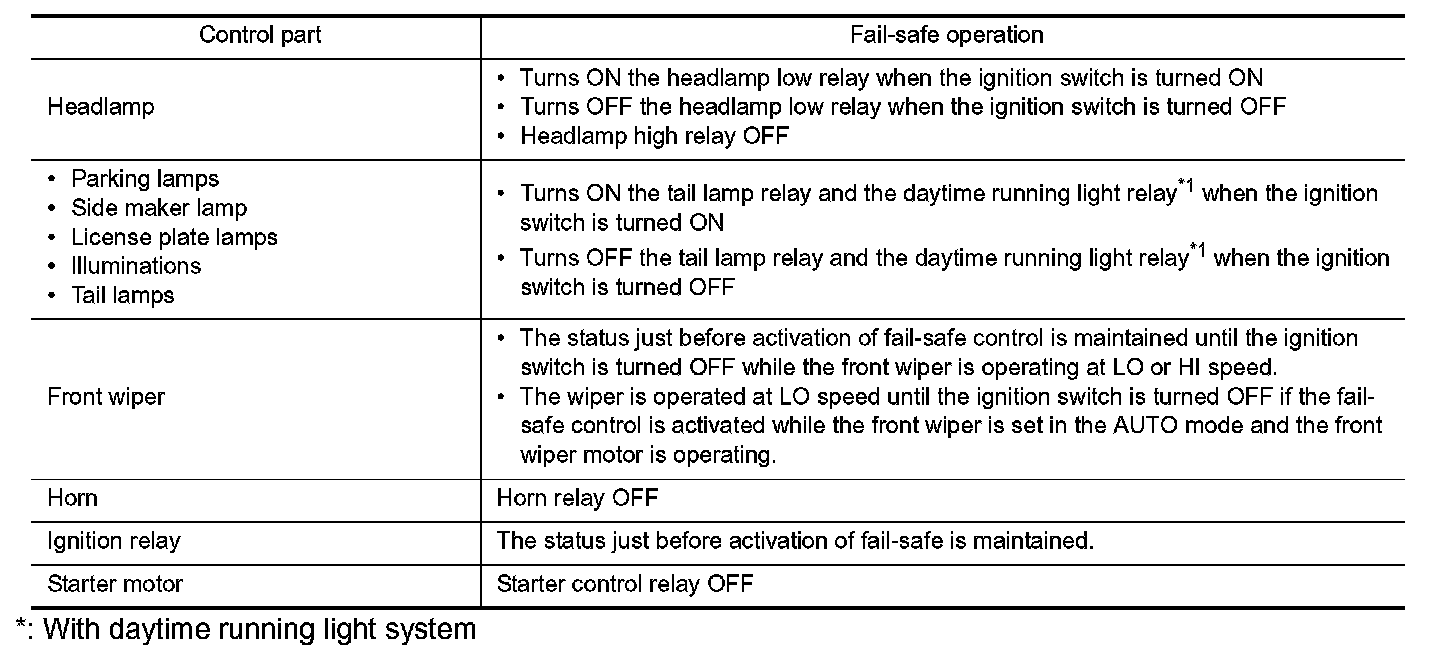 - If the ignition relay cannot turn OFF due to contact seizure, it activates the tail lamp relay and the daytime
