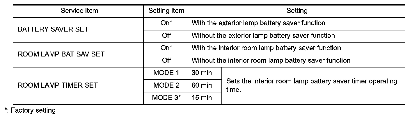 BATTERY SAVER : CONSULT Function (BCM - BATTERY SAVER) (Roadster Models)