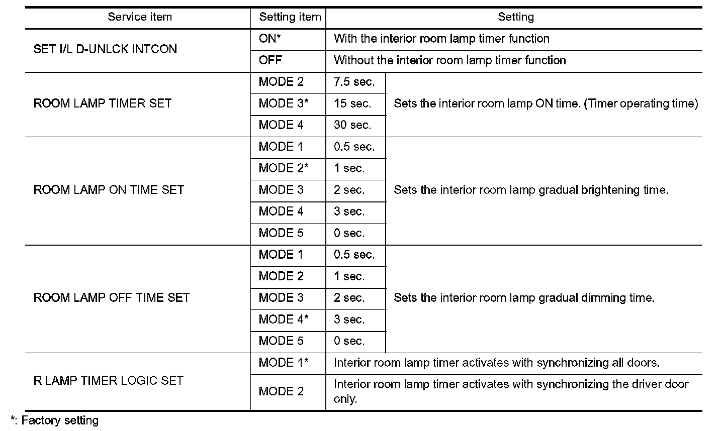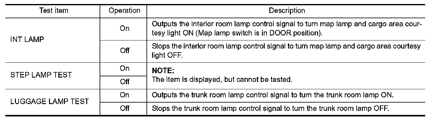 INT LAMP : CONSULT Function (BCM - INT LAMP) (Roadster Models)