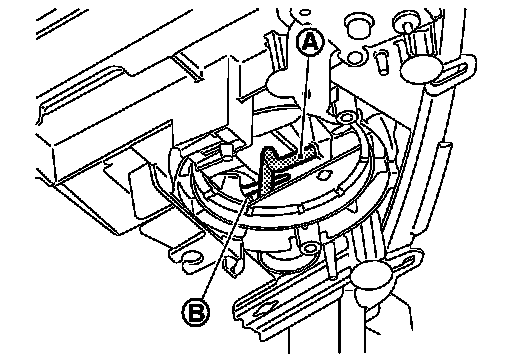 - When xenon bulb socket installation, fix xenon bulb socket harness (A) to a protruding portion (B) in a headlamp housing surely.