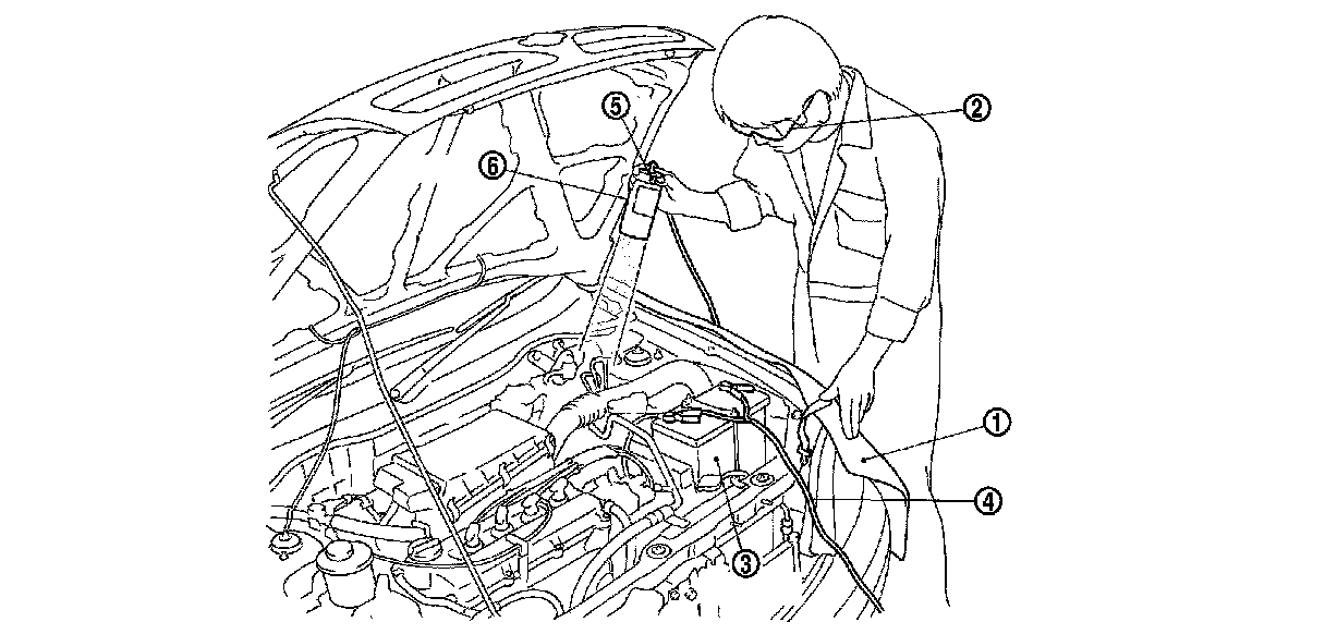 4.Clean area where refrigerant leakage check is performed, and check refrigerant leakage along all surfaces of pipe connections and A/C system components using electrical leak detector (J-41995) probe.
