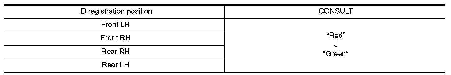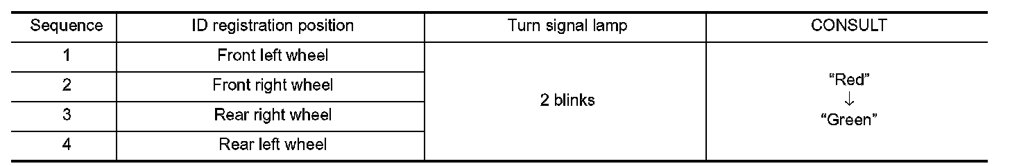 Perform the ID registration procedure starting from the vehicle front left wheel, then repeat the procedure in the order of the front right wheel, rear right wheel, and rear left wheel.