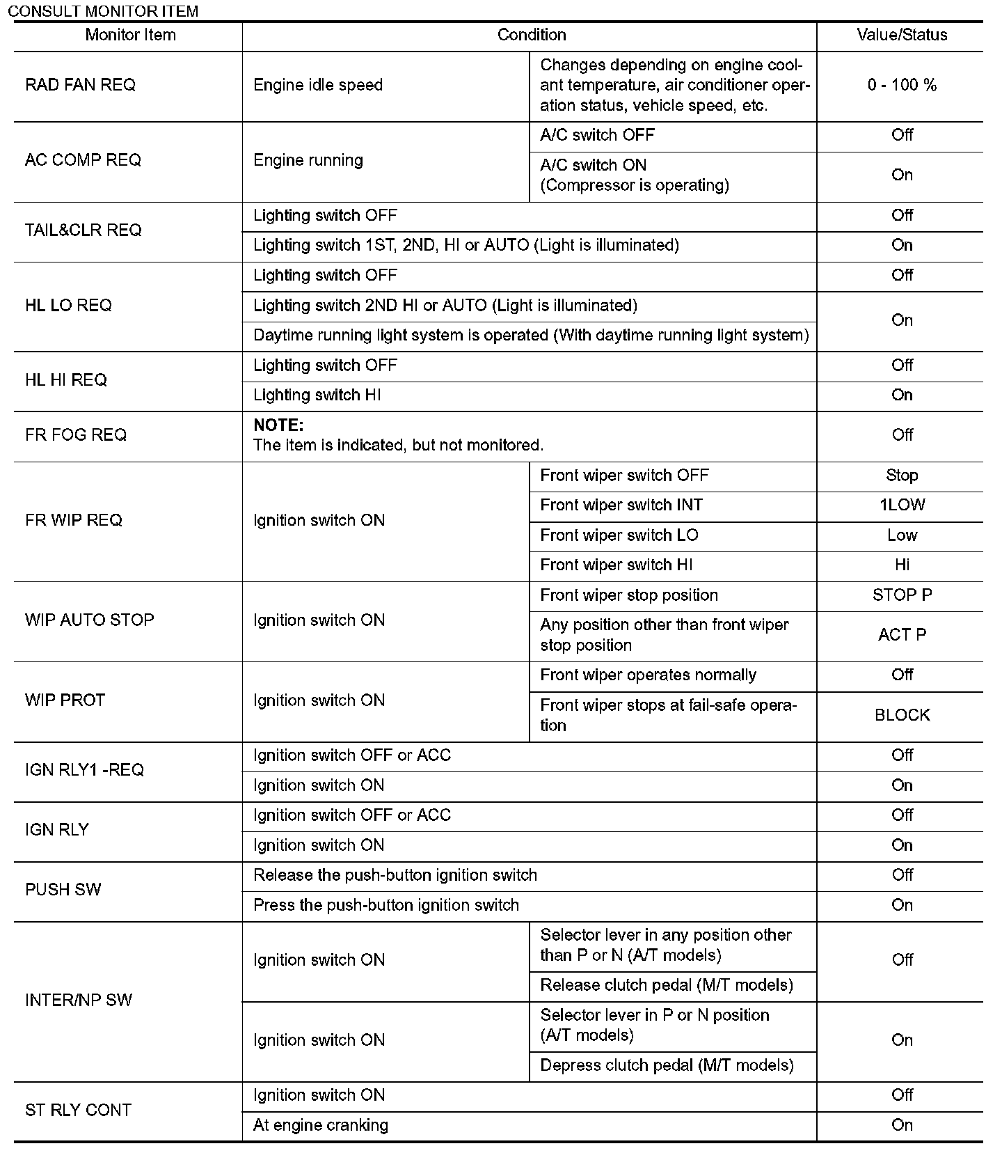 CONSULT MONITOR ITEM