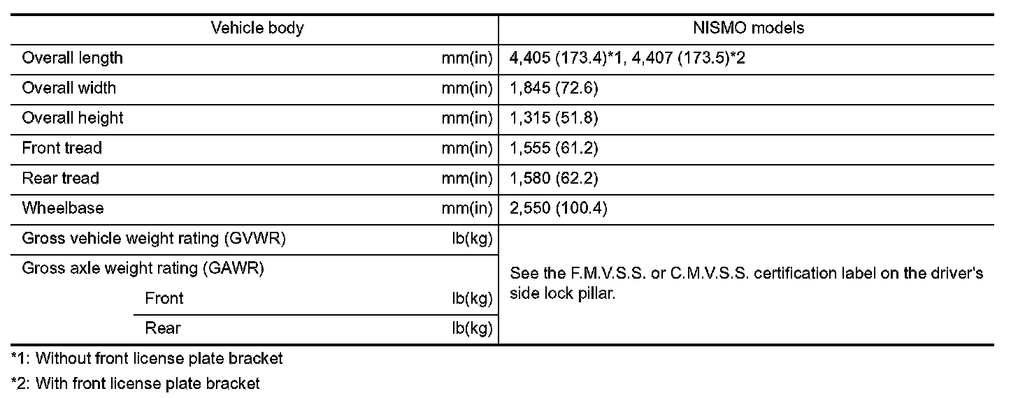 Dimensions And Weights Nismo