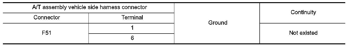 Check continuity between A/T assembly vehicle side harness connector terminal and ground.