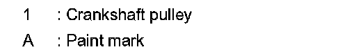- Rotate crankshaft pulley clockwise to align timing mark (grooved line without color) with timing indicator.