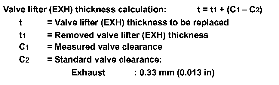5.Use the equation below to calculate valve lifter (EXH) thickness for replacement.