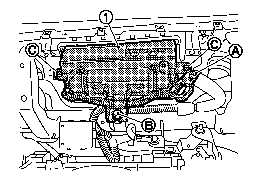 4.Remove the passenger air bag module fixing bolt (B) and screws (C).