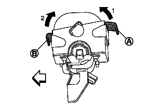 5.Disconnect the pawls (A), (B) and then remove the passenger air bag module.