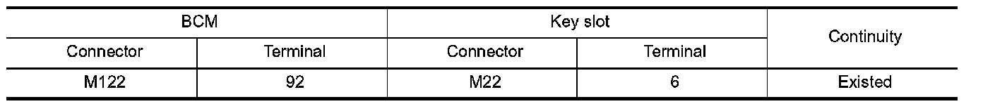 2.Check continuity between BCM harness connector and key slot harness connector.