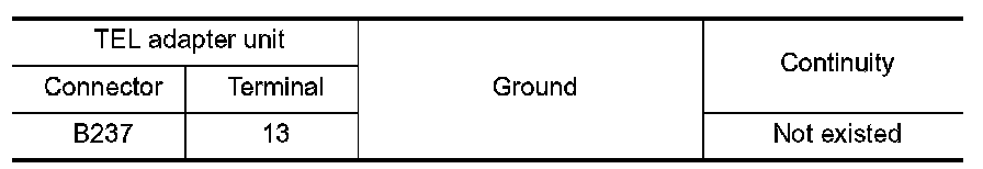 4.Check continuity between TEL adapter unit harness connector and ground.