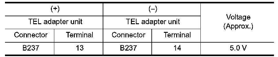 3.Check voltage between TEL adapter unit harness connector.