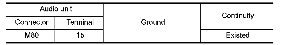 3.Check continuity between audio unit harness connector.