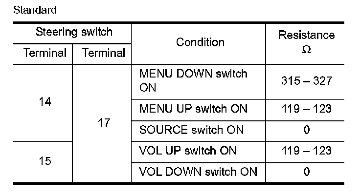 Measure the resistance between the steering switch connector.