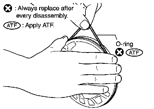 and J-34285-87)] (A) on 2346 brake spring retainer and install snap ring (fixing 2346 brake spring retainer) (1) to oil pump assembly while compressing return spring.