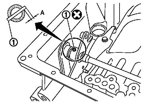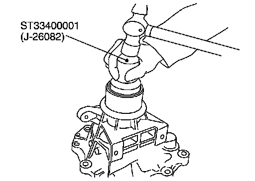 1.As shown in the figure, use a drift [22 mm (0.87 in) dia. commercial service tool] to drive manual shaft oil seals into the transmission case until it is flush.