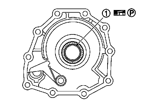 Check that the needle bearing (2) is securely positioned. If the needle bearing position is misaligned, adjust it to the specified position.