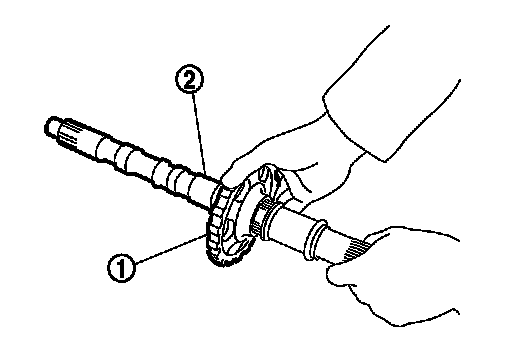 27.Install parking gear (1) to output shaft (2).