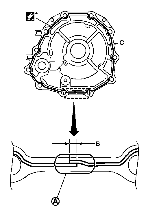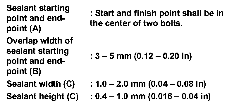 30.Apply recommended sealant (Genuine Anaerobic Liquid Gasket or equivalent. Recommended Chemical Products And Sealants.) to rear extension assembly as shown in the figure.