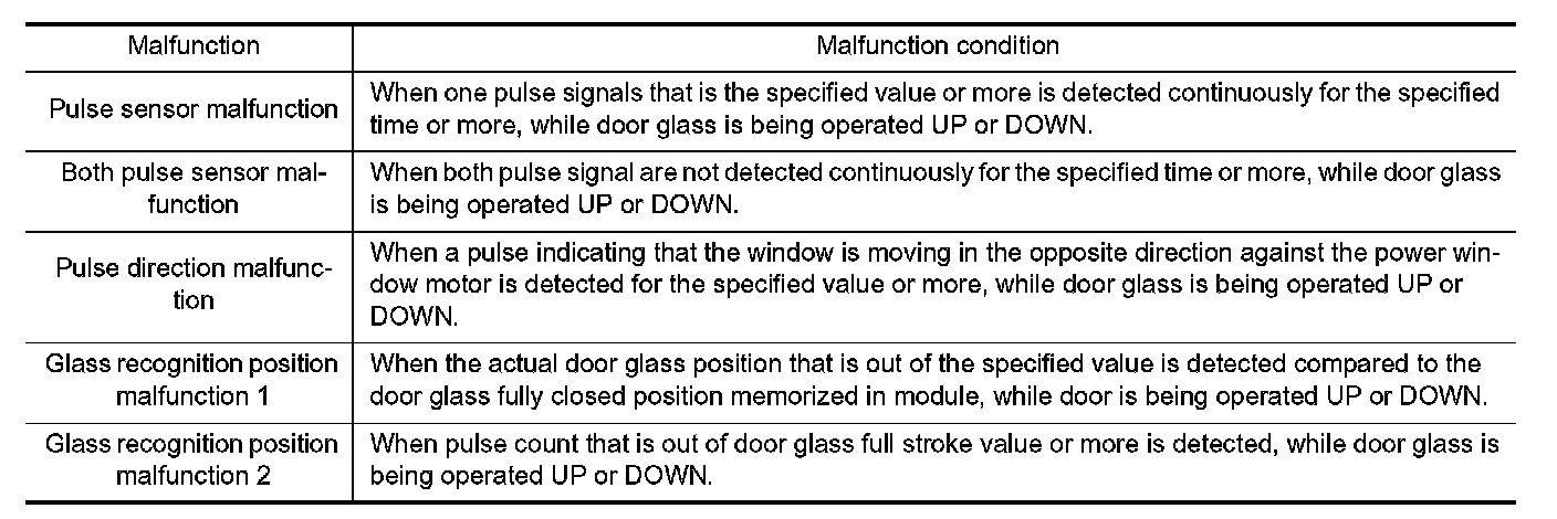When fail-safe control is activated, perform initializing operation to recover. If a malfunction is detected in power window switch, fail-safe control is activated again.