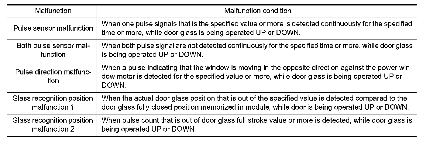 When fail-safe control is activated, perform initializing operation to recover. If a malfunction is detected in power window switch, fail-safe control is activated again.