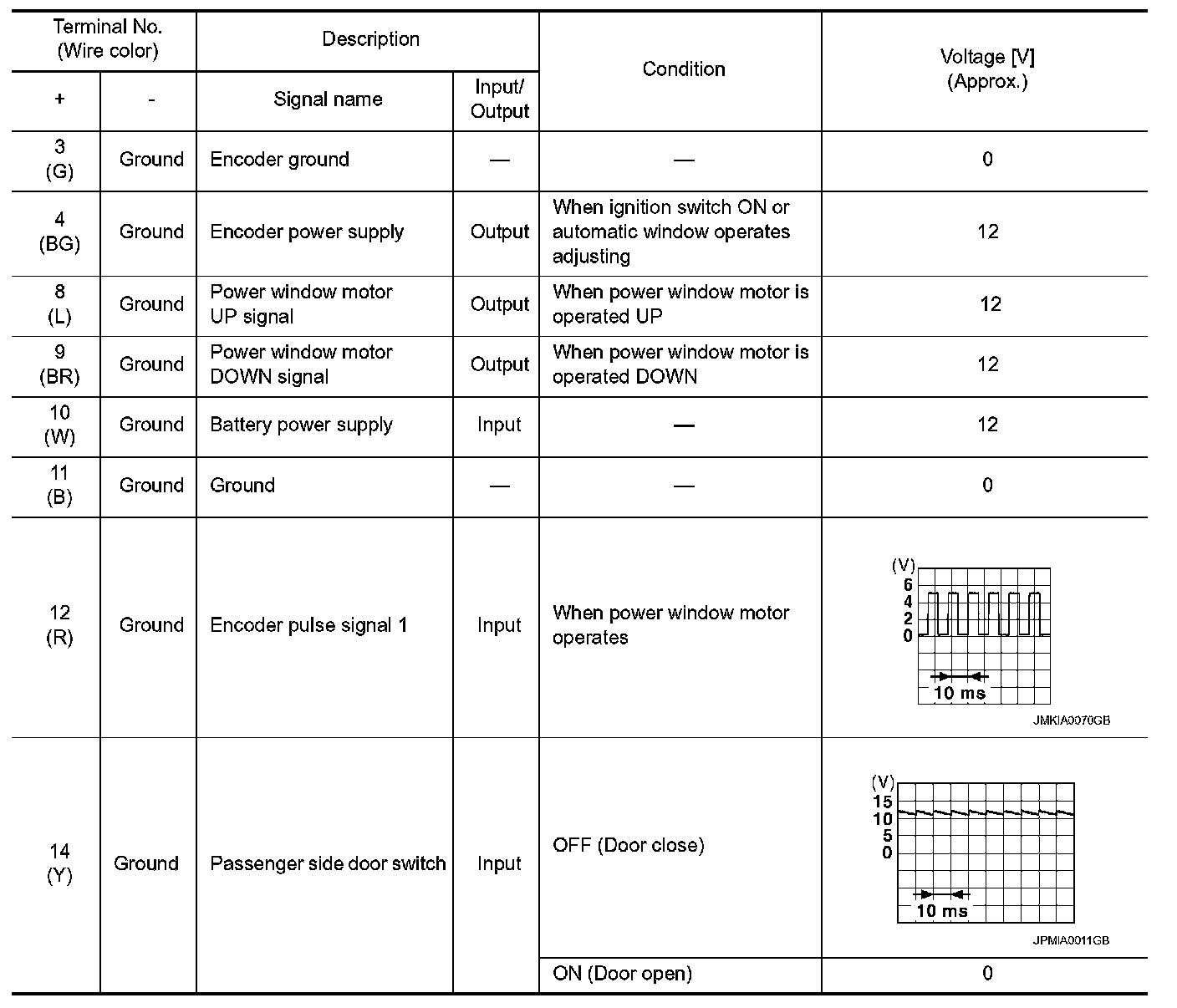 Pinout Values and Diagnostic Parameters
