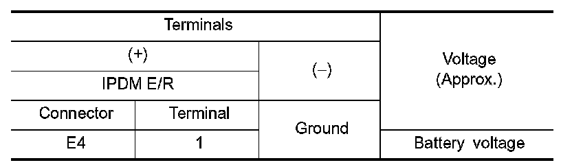 3.Check voltage between IPDM E/R harness connector and the ground.