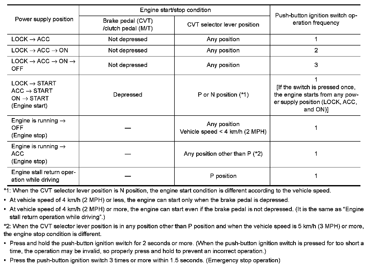 *: For the engine start condition, refer to "PUSH-BUTTON IGNITION SWITCH OPERATION PROCEDURE".