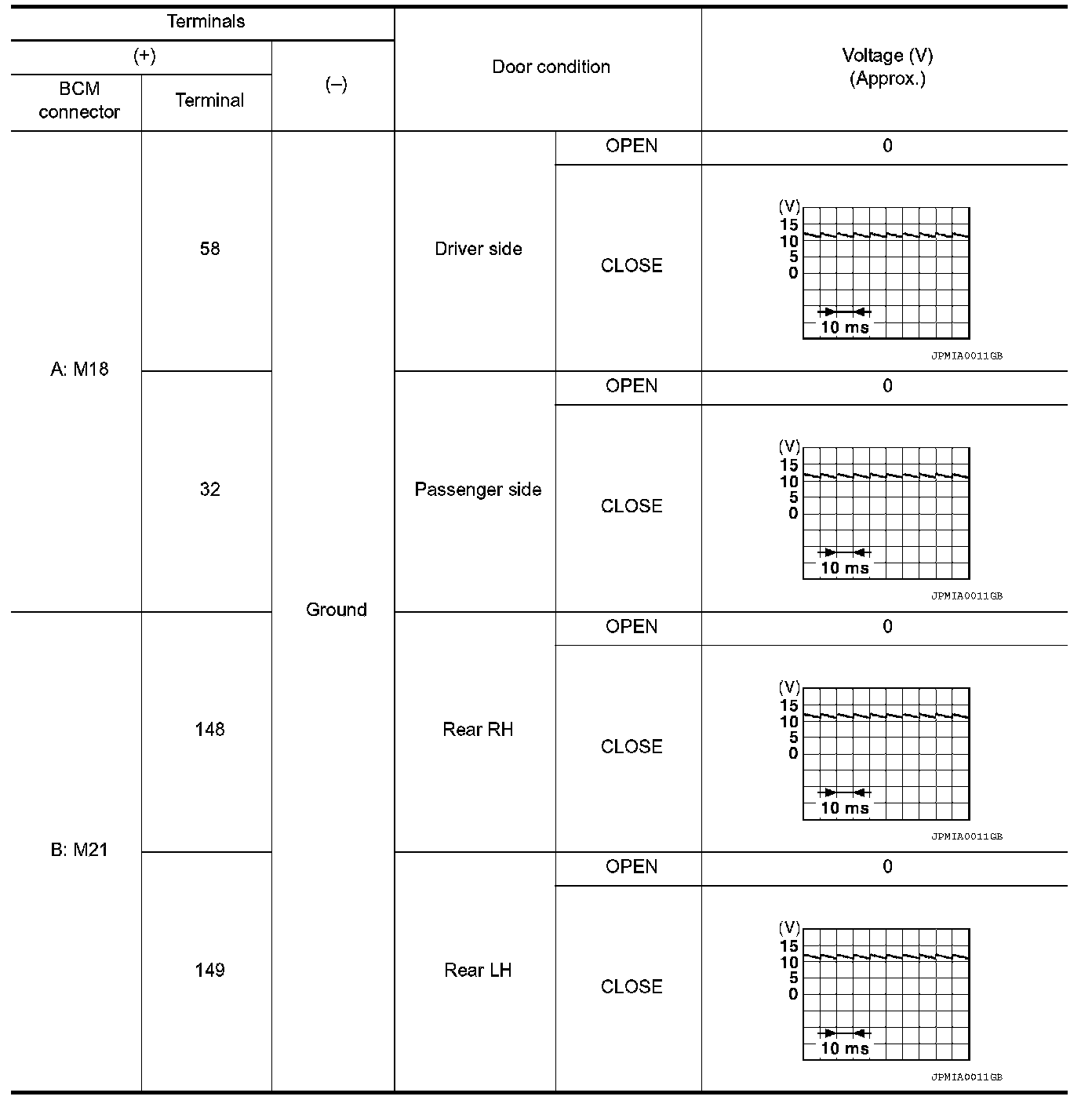 2.Check signal between BCM connector and ground with oscilloscope.
