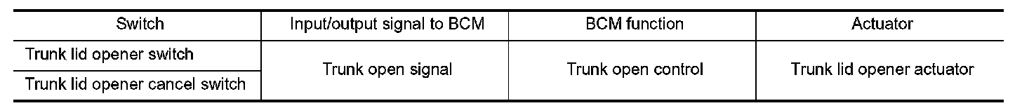 TRUNK LID OPENER SWITCH : System Description