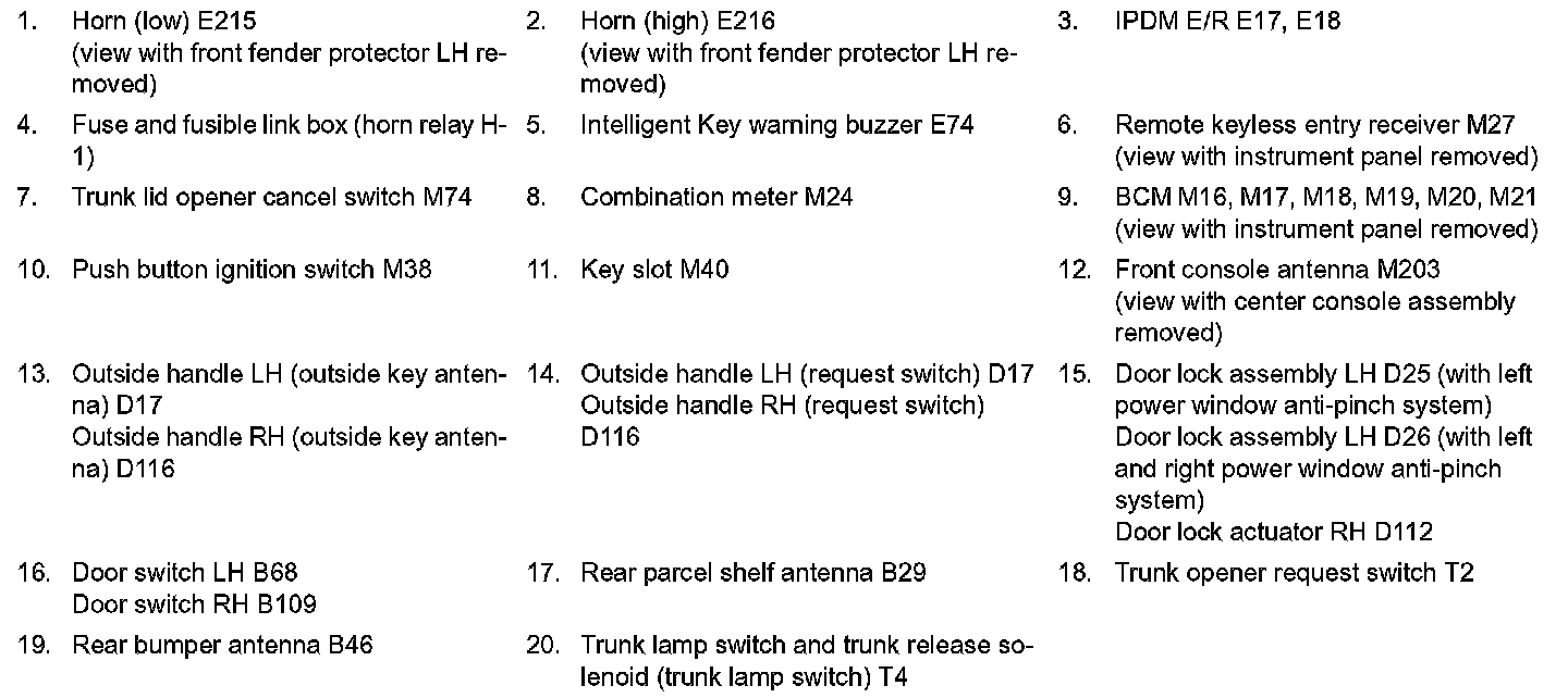 INTELLIGENT KEY : Component Parts Location