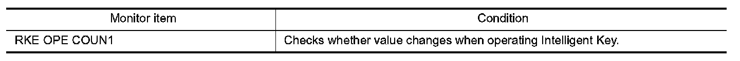 Check remote keyless entry receiver RKE OPE COUN1 in Data Monitor mode with CONSULT.