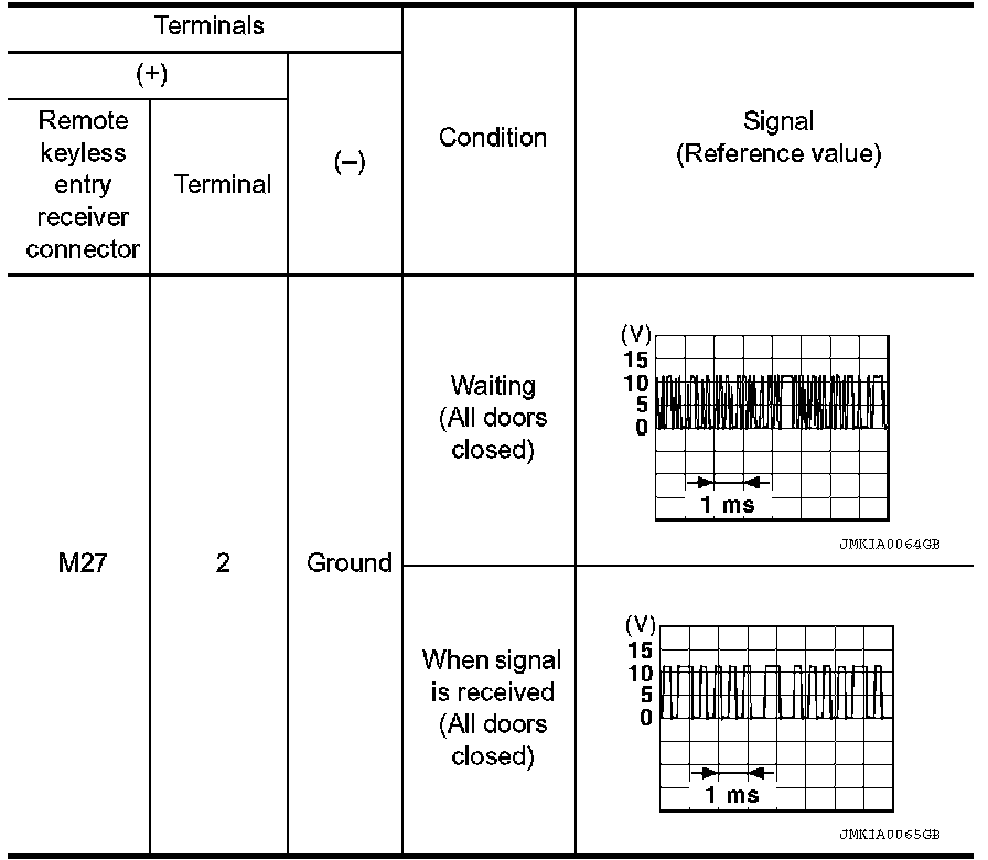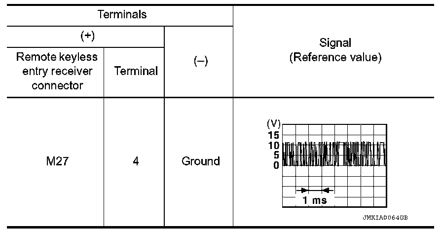 2.Check signal between remote keyless entry receiver connector and ground with oscilloscope.