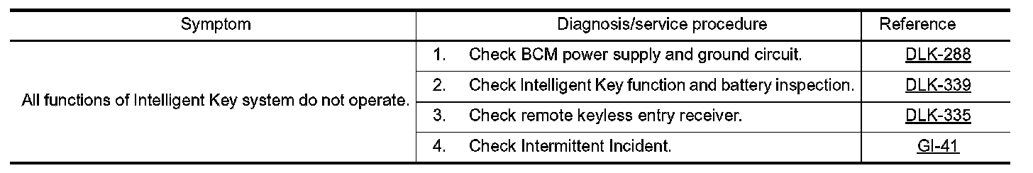 INTELLIGENT KEY SYSTEM SYMPTOMS