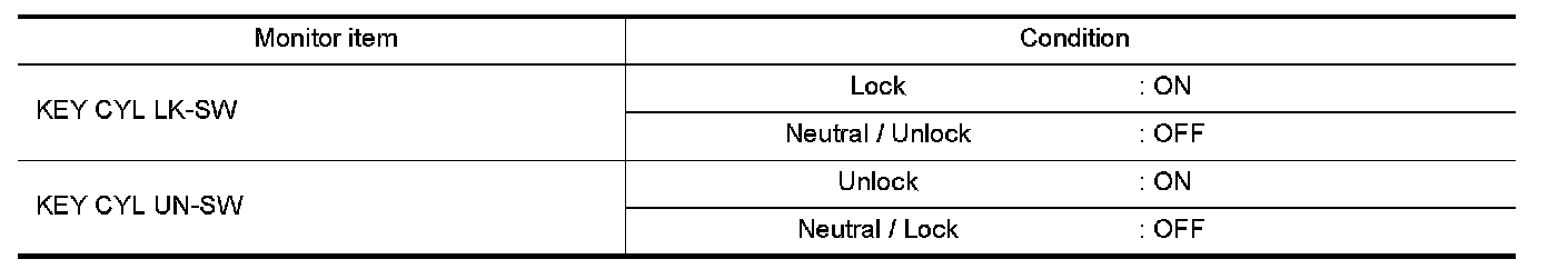 1. CHECK DOOR KEY CYLINDER SWITCH INPUT SIGNAL